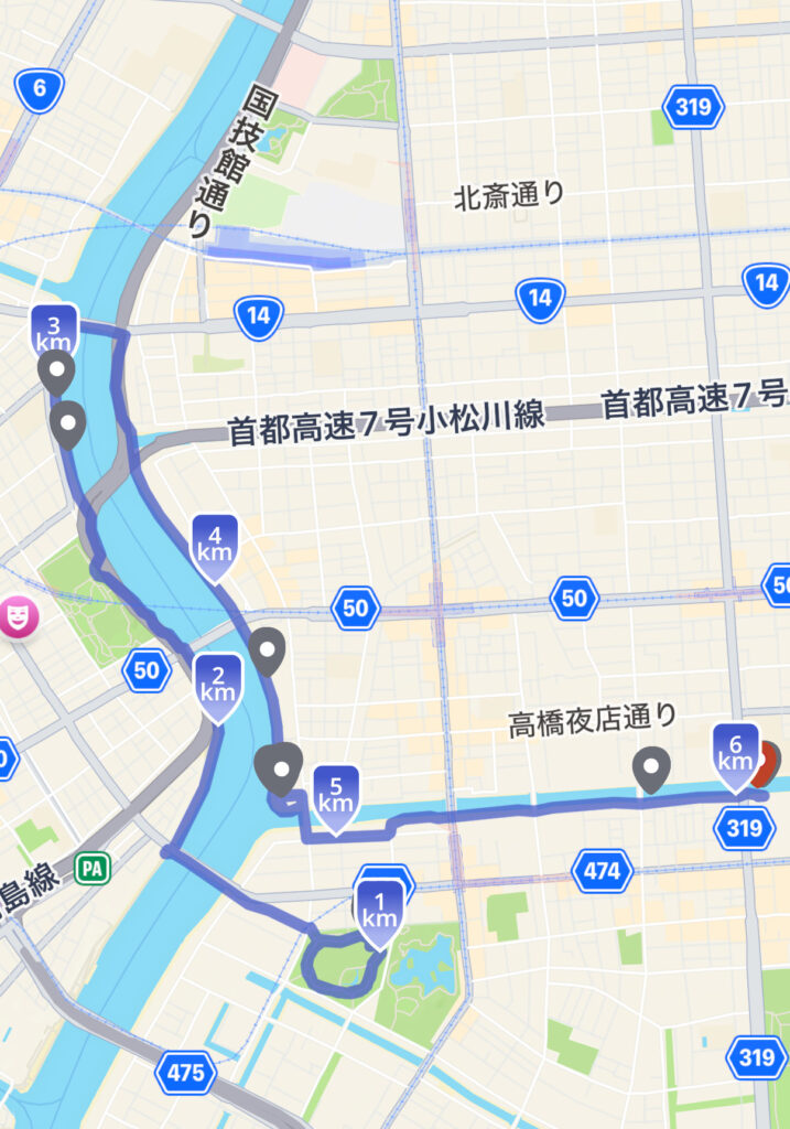 少々ハード目に筋トレ&合計6km越えのラン、清洲橋前の松尾くんとも記念撮影!