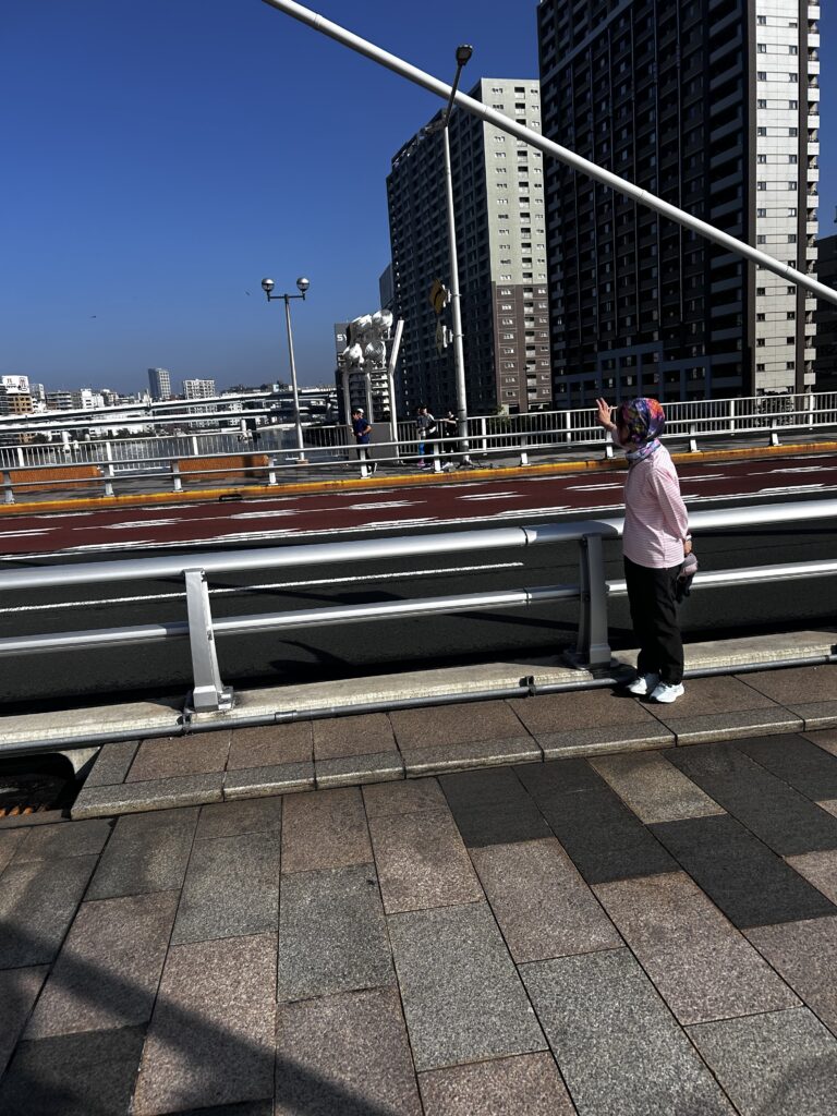 中央区新大橋を渡り、浜町公園に向かいます。