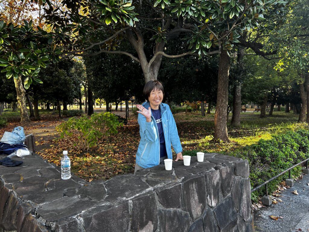 翌日の江東シーサイドマラソンに備えて距離を少なくして、給水の練習をする。