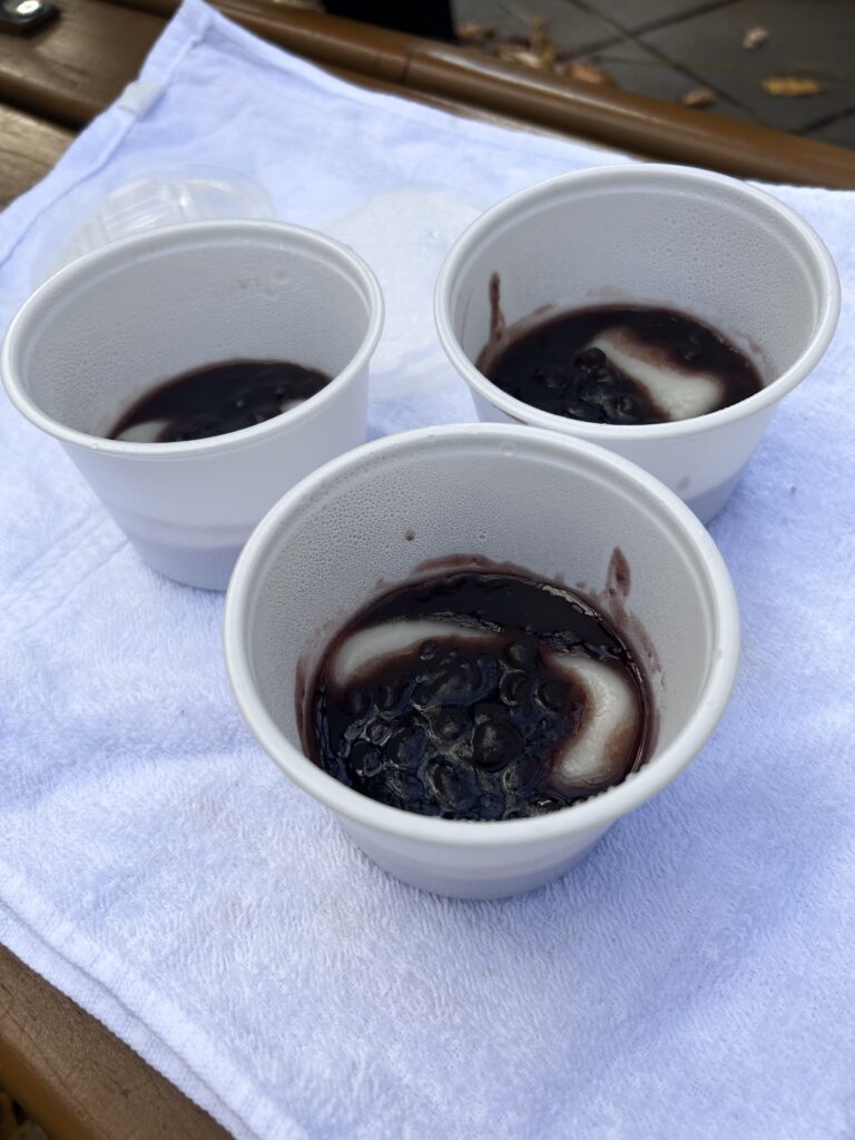 このままではぜんざいなので、熱湯をいれてお汁粉にします