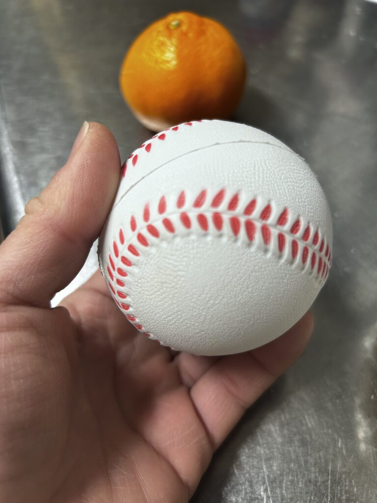 キャッチボールは当たっても痛くないスポンジ系の軽いボールです。