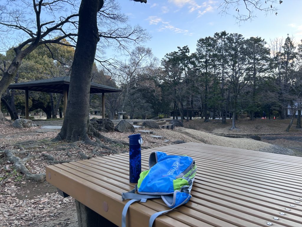 お気に入りのホットコーヒーを入れて朝日を浴びて公園でひと休憩。少しづつまた走りたいと思います。
